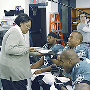 in the locker room or riding on the Eagles' team bus, reminding
